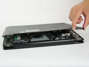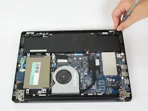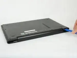 Попробуйте использовать инструмент для открытия в нескольких местах. Резкое приподнимание задней крышки может повредить ноутбук.