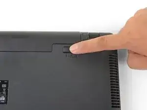 Сдвиньте правую защелку батареи наружу в положение разблокировки.