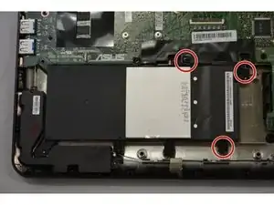 Удалите три винта Phillips #0 по 5 мм, крепящие батарею.