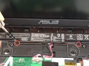 Удалите два винта Phillips #00 длиной 6.6мм, удерживающие батарею на месте.