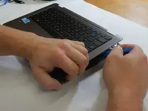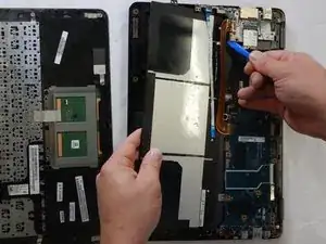 Используйте пластиковый инструмент для открытия, чтобы снять панель клавиатуры.