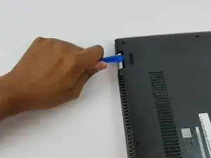 Пройдитесь вдоль заднего края с пластиковым инструментом для открывания, поднимая крышку по мере движения. Нормально слышать щелчки, так как крышка держится на зажимах.