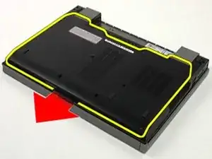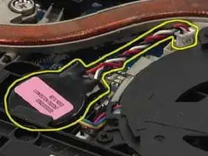После удаления панели доступа найдите батарею типа "монета". Затем отсоедините кабель батареи от системной платы и извлеките батарею из гнезда.