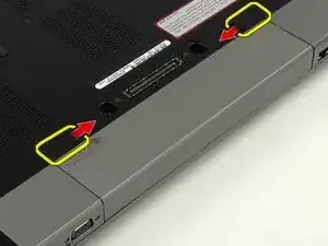 Чтобы снять батарею, переместите защелки внутрь и вытащите батарею из системы.