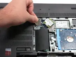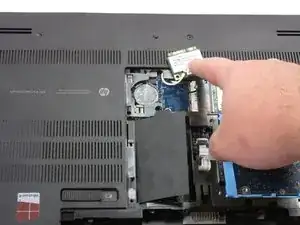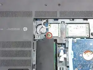 Удалите винт от беспроводного адаптера с помощью отвертки PH0, затем отодвиньте адаптер в сторону, чтобы получить доступ к батарее CMOS.