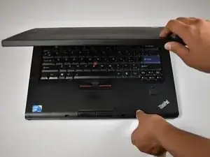 Поднимите клавиатуру, но будьте осторожны, чтобы не снять её полностью.