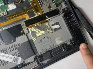 Снимите заднюю крышку с помощью инструмента для открытия, обнажив внутреннюю часть ноутбука.