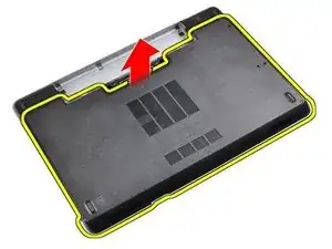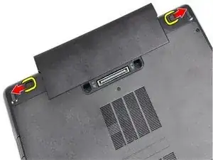 Перетащите защелки батареи в положение разблокировки. Затем поверните наружный край батареи вверх и удалите ее из системы.