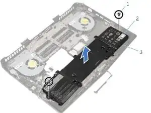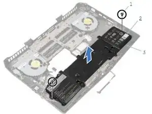 Удалите винты, которые крепят аккумулятор к основанию компьютера.