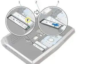 Сдвиньте и извлеките модуль памяти из любого слота памяти, который вы собираетесь заполнить заново.