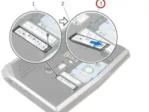 Удалите винт, который фиксирует твердотельный накопитель к основанию компьютера.