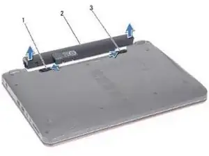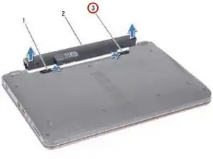 Переместите защёлку фиксатора батареи и защёлку высвобождения батареи в положение «разблокировано».