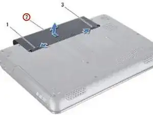 Сдвиньте задвижку освобождения батареи в положение разблокировки.