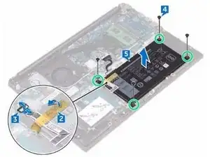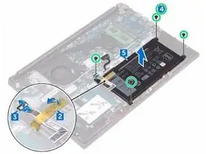 Удалите четыре винта (M2x3), которые крепят батарею к подставке для ладоней и сборке клавиатуры.
