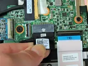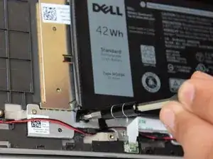 Выньте тканевую клипсу, которая соединяет батарею с основной платой, от разъема вручную.