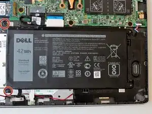 Удалите два винта длиной 7.8 мм с левой стороны батареи с помощью отвертки Phillips #1.