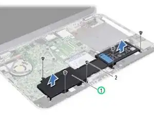 Удалите винты, которые крепят батарею к корпусу компьютера.