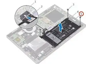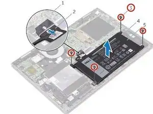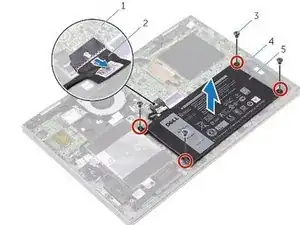 Удалите четыре винта (M2x3.0), крепящие батарею к узлу подлокотника.