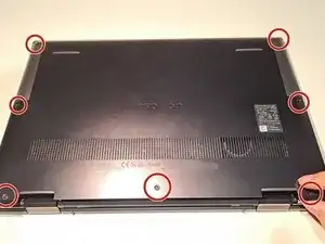 Используйте отвертку Phillips #00, чтобы удалить семь винтов M2x4 с задней панели ноутбука.