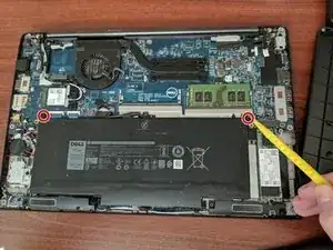 Используйте крестовую отвертку для удаления двух винтов, удерживающих батарею на месте.