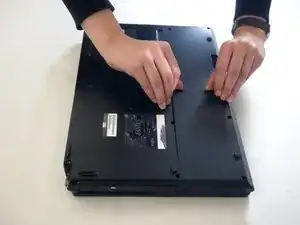 Найдите два зажима внизу компьютера, которые поддерживают батарею.