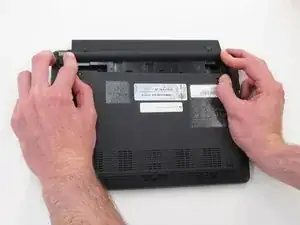 Сожмите переключатели и сдвиньте в стороны компьютера, чтобы разблокировать.