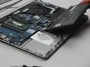 Ухватитесь за нижний край батареи и потяните на себя, чтобы отключить разъем батареи.