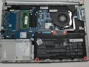 Удалите четыре винта Phillips, которые удерживают батарею.