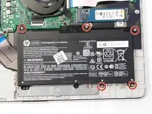 Удалите пять винтов M2x6, которые надежно крепят батарею, с помощью отвертки Phillips #1.