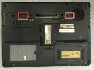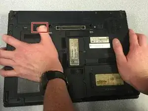 Переверните ноутбук так, чтобы отсек для батареи оказался сверху.