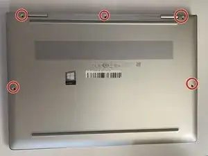 С помощью бит T5 и отвертки ослабьте пять удерживающих винтов на нижней части ноутбука.