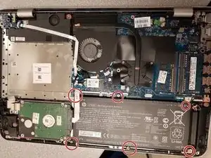 Удалите шесть винтов, удерживающих батарею, с помощью отвертки Phillips #0.