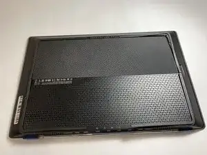 Переверните ноутбук так, чтобы его задняя сторона была направлена вверх.