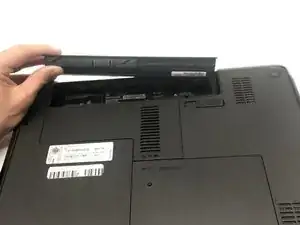 Освободите переключатель на нижней части ноутбука под батареей, нажав его влево.