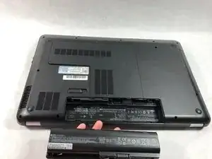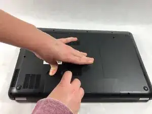 Переместите переключатель удаления батареи к центру ноутбука, пока батарея не выскочит.
