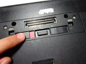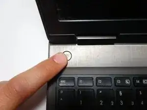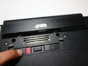 Сдвиньте правый слайд-переключатель в верхней части центра ноутбука влево. Возможно, вам придется приложить небольшое усилие.
