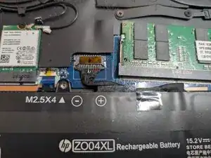 Вытащите разъем батареи параллельно материнской плате, чтобы отключить его.