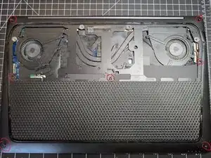 Удалите 6 винтов Philip's #00, удерживающих батарею. Их нужно полностью открутить.