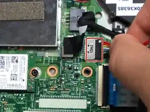 Отключите разноцветные кабели в верхнем левом углу батареи от материнской платы.