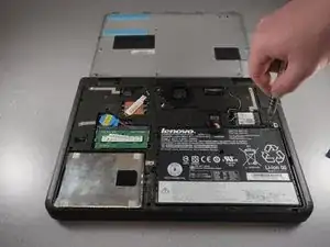 Переверните ноутбук и положите его на переднюю панель, открывая винты задней крышки.