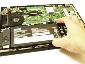 С помощью рук извлеките батарею из ноутбука.