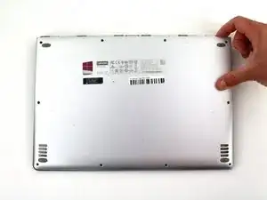 Используйте пластиковую лопатку, чтобы приоткрыть заднюю панель в местах петель ноутбука.