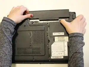 Переверните ноутбук так, чтобы вы видели его нижнюю часть.