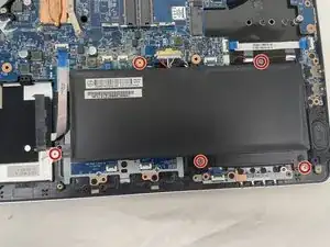 Удалите пять винтов с крестовой головкой, удерживающих батарею.