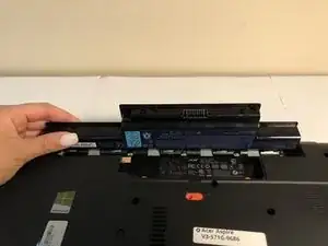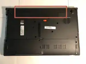 Переверните ноутбук вверх дном, чтобы найти батарею в верхней части устройства.