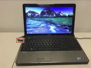 Выключите ноутбук, удерживая кнопку питания серебристого цвета в верхнем левом углу, пока все индикаторы не погаснут.