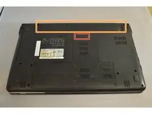 Другой рукой вытяните батарею из ноутбука и отпустите фиксатор.