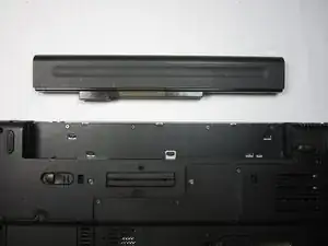 Сильно потяните батарею наружу и вдали от ноутбука.