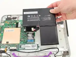 Существует легкий клей, удерживающий батарею. Будьте осторожны, чтобы не проколоть или чрезмерно не изгибать батарею, освобождая ее от клея.