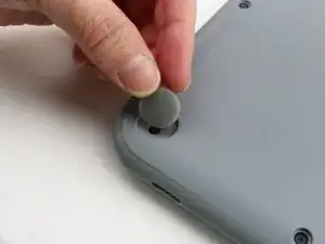 Используя пластиковый инструмент для открытия iFixit или лопатку, начните рядом с белыми петлями устройства и поднимите вдоль внешних краев устройства, пока все защелки не освободятся.